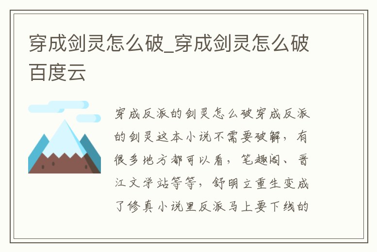 穿成劍靈怎么破_穿成劍靈怎么破百度云