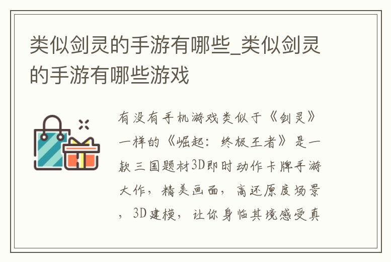 類似劍靈的手游有哪些_類似劍靈的手游有哪些游戲
