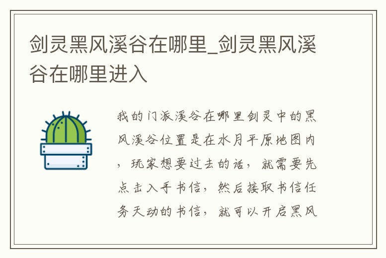 劍靈中的黑風溪谷位置是在水月平原地圖內,玩家想要過去的話,就需要先點擊入手書信,然后接取書信任務天動的書信,就可以開啟黑風溪谷的遁地點了,接下來只要點擊地圖找到黑風溪谷就可以過去了。