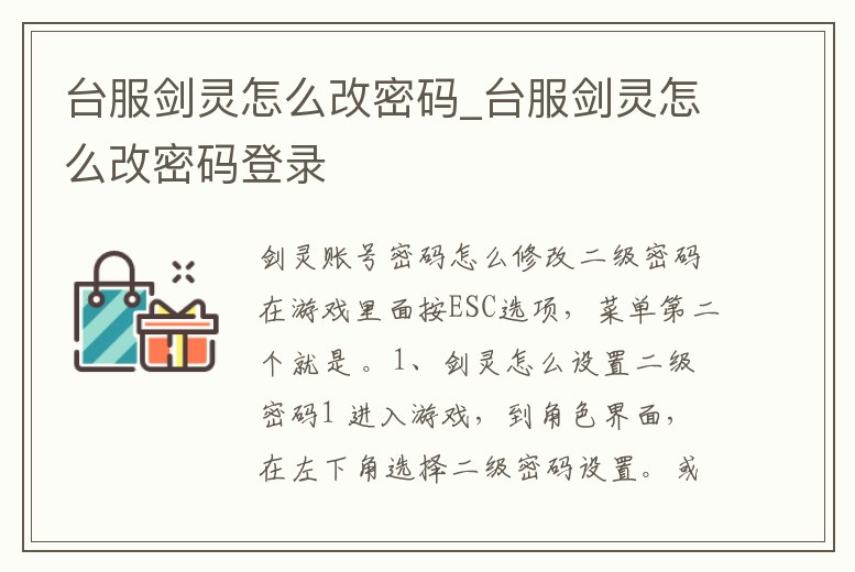 臺服劍靈怎么改密碼_臺服劍靈怎么改密碼登錄