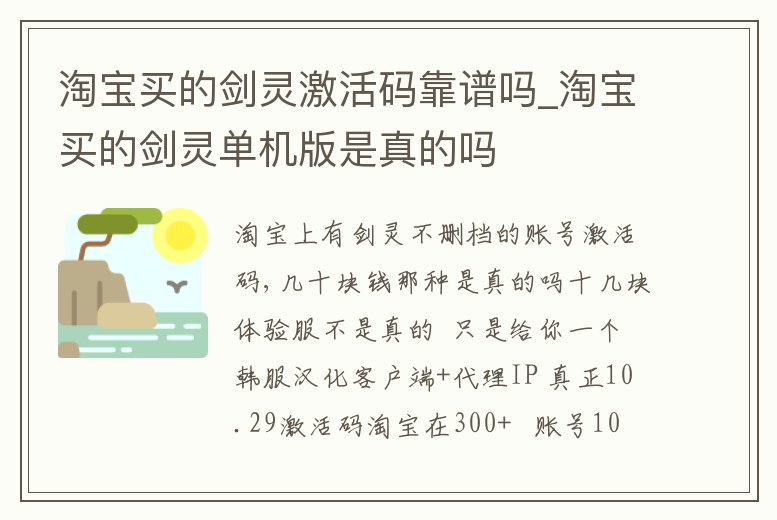 淘寶買的劍靈激活碼靠譜嗎_淘寶買的劍靈單機版是真的嗎