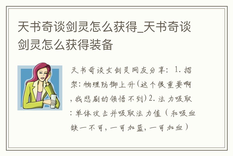 天書奇談劍靈怎么獲得_天書奇談劍靈怎么獲得裝備
