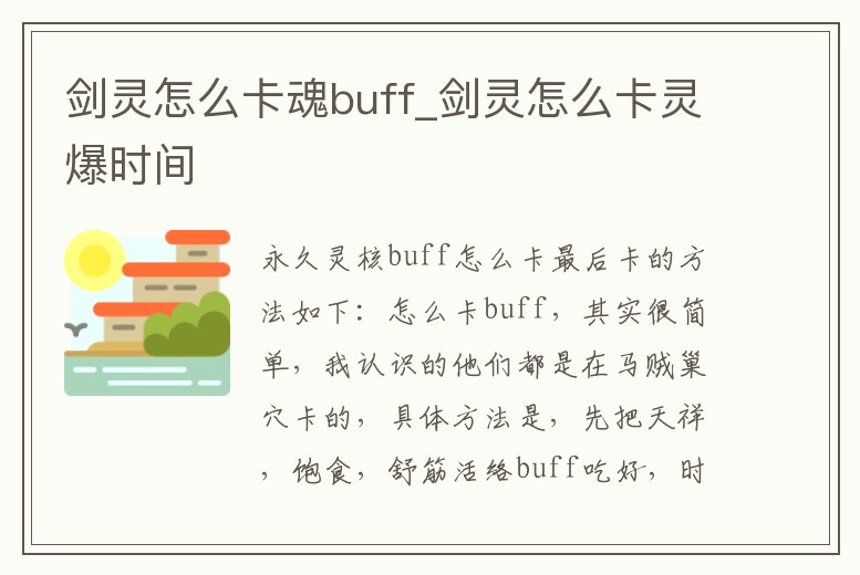 劍靈怎么卡魂buff_劍靈怎么卡靈爆時間