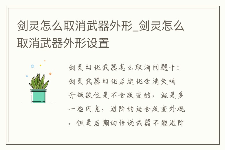 劍靈怎么取消武器外形_劍靈怎么取消武器外形設置