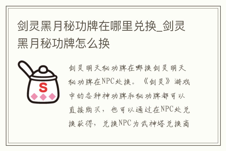 劍靈黑月秘功牌在哪里兌換_劍靈黑月秘功牌怎么換