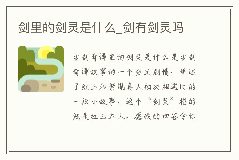 是古劍奇譚故事的一個分支劇情,講述了紅玉和紫胤真人初次相遇時的一段小故事,這個“劍靈”指的就是紅玉本人,愿我的回答令你滿意,滿意的話就采納吧!