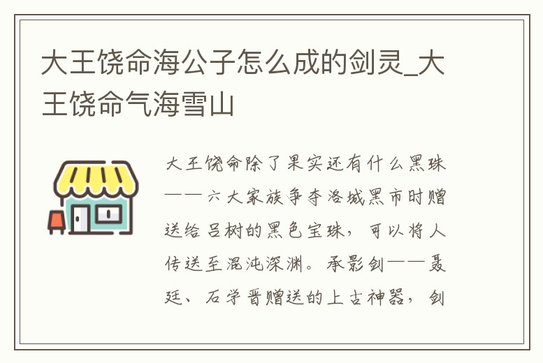 大王饒命海公子怎么成的劍靈_大王饒命氣海雪山