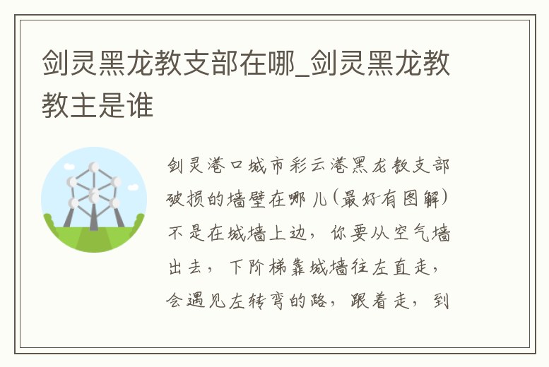 劍靈黑龍教支部在哪_劍靈黑龍教教主是誰