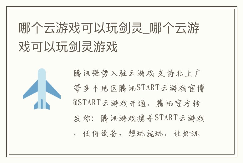 哪個云游戲可以玩劍靈_哪個云游戲可以玩劍靈游戲