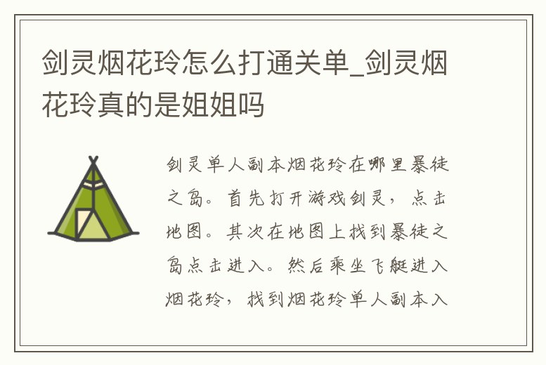 劍靈煙花玲怎么打通關(guān)單_劍靈煙花玲真的是姐姐嗎