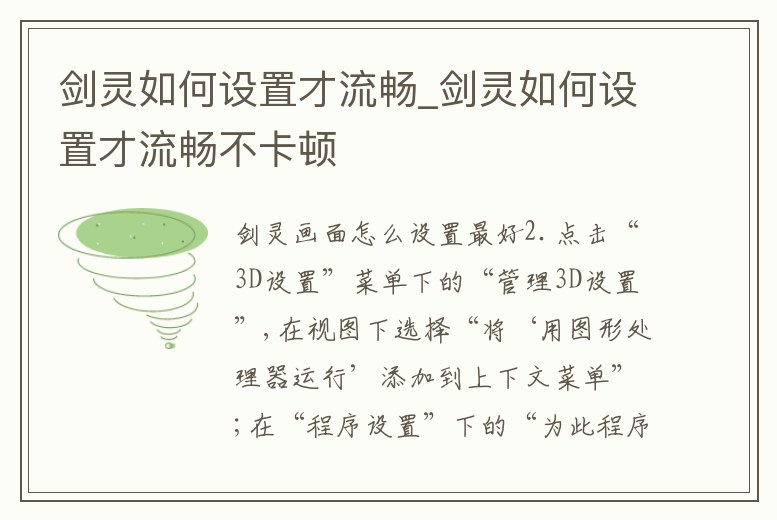 劍靈如何設置才流暢_劍靈如何設置才流暢不卡頓