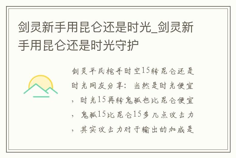劍靈新手用昆侖還是時光_劍靈新手用昆侖還是時光守護