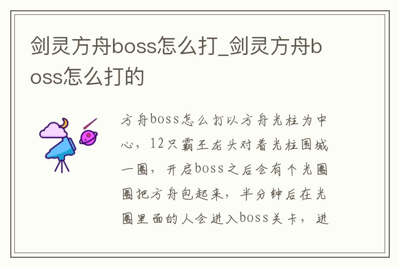 劍靈方舟boss怎么打_劍靈方舟boss怎么打的