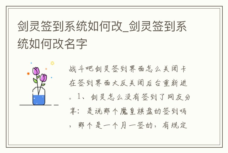 劍靈簽到系統如何改_劍靈簽到系統如何改名字