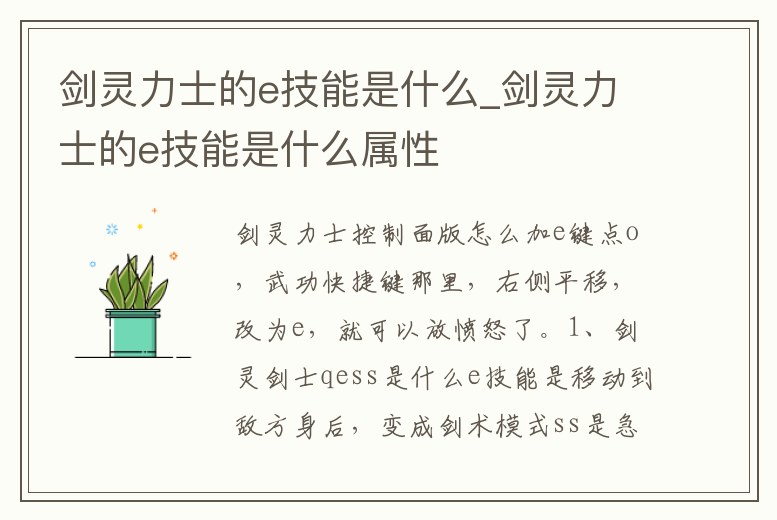 劍靈力士的e技能是什么_劍靈力士的e技能是什么屬性