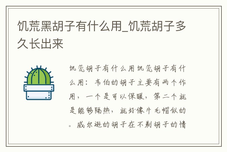 饑荒胡子有什么用:韋伯的胡子主要有兩個作用,一個是可以保暖,第二個就是能夠隔熱,就好像牛毛帽似的。威爾遜的胡子在不剃胡子的情況下,冬天可以保暖,額外延長凍傷時間。剃胡子可以制作黑魔法里的威爾遜復(fù)活雕像,除作弊外。