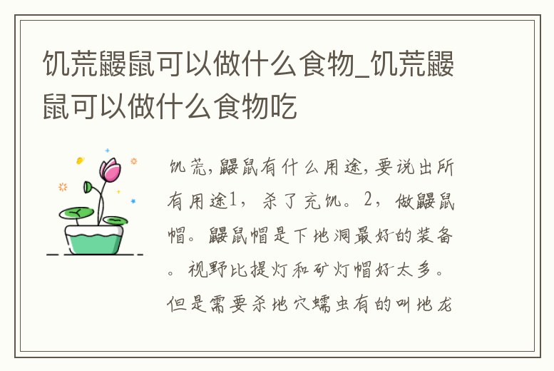 饑荒,鼴鼠有什么用途,要說出所有用途
