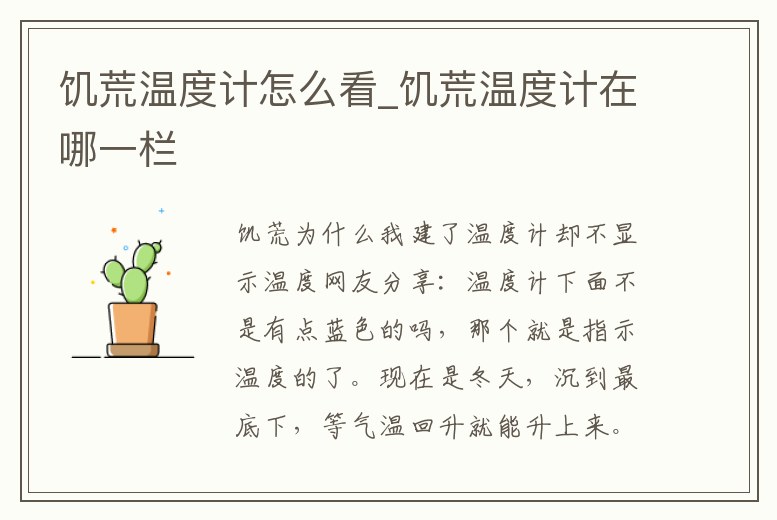 饑荒為什么我建了溫度計(jì)卻不顯示溫度