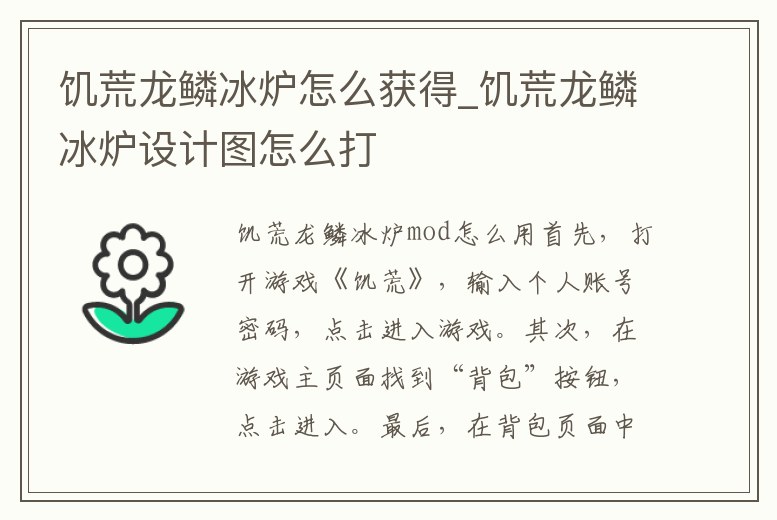饑荒龍鱗冰爐怎么獲得_饑荒龍鱗冰爐設計圖怎么打