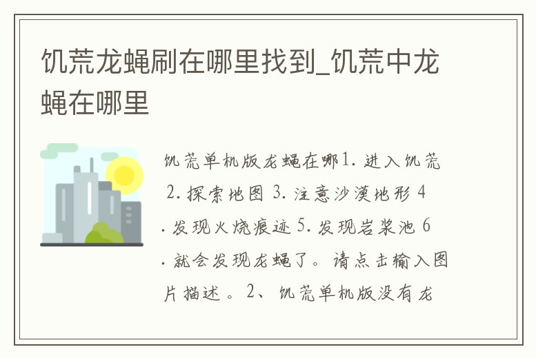 1.進入饑荒 2.探索地圖 3.注意沙漠地形 4.發(fā)現(xiàn)火燒痕跡 5.發(fā)現(xiàn)巖漿池 6.就會發(fā)現(xiàn)龍蠅了。請點擊輸入圖片描述 。