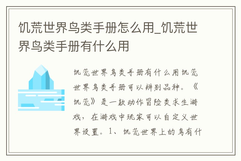 饑荒世界鳥類手冊怎么用_饑荒世界鳥類手冊有什么用