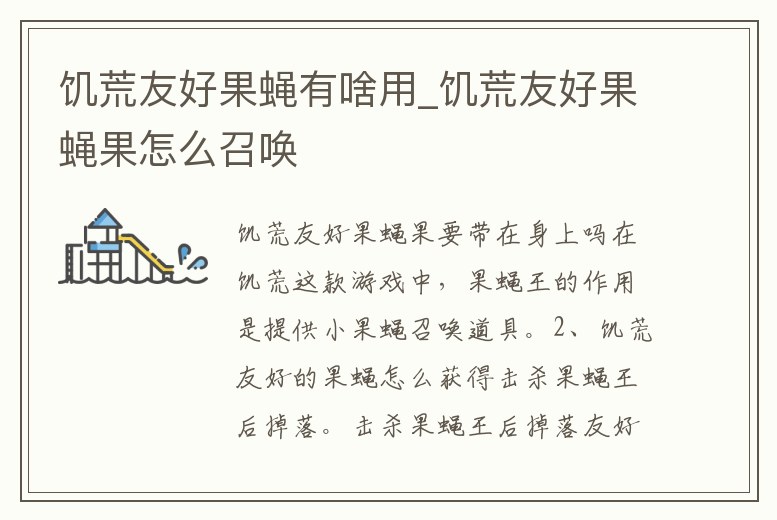 饑荒友好果蠅有啥用_饑荒友好果蠅果怎么召喚
