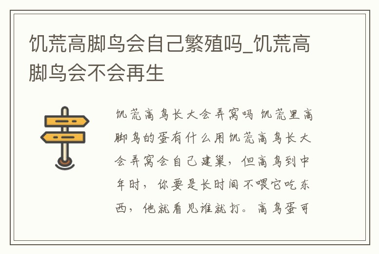 饑荒高腳鳥會自己繁殖嗎_饑荒高腳鳥會不會再生