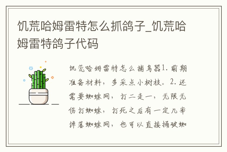 饑荒哈姆雷特怎么抓鴿子_饑荒哈姆雷特鴿子代碼