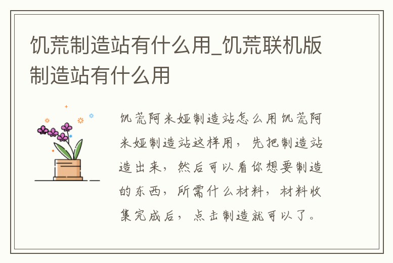 題主是否想詢問:“饑荒阿米婭mod制造站怎么”?首先先把制造站造出來。然后看你想要制造的東西,需要什么材料制作。最后材料收集完成后,點擊制造就即可獲得物品。