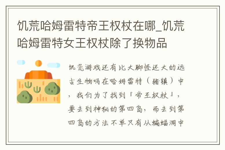 饑荒哈姆雷特帝王權杖在哪_饑荒哈姆雷特女王權杖除了換物品