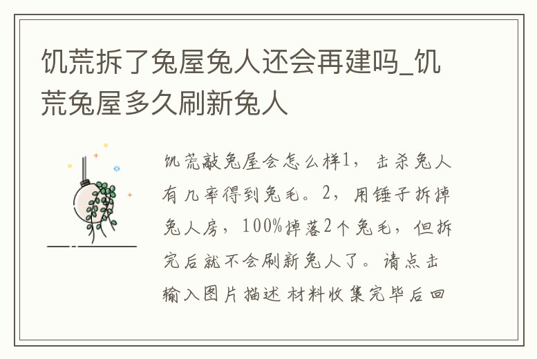 饑荒拆了兔屋兔人還會(huì)再建嗎_饑荒兔屋多久刷新兔人