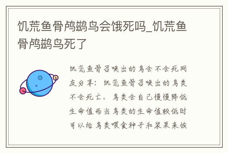 饑荒魚骨鸕鶿鳥會餓死嗎_饑荒魚骨鸕鶿鳥死了