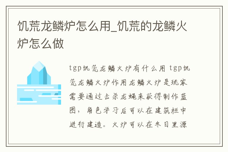 饑荒龍鱗爐怎么用_饑荒的龍鱗火爐怎么做