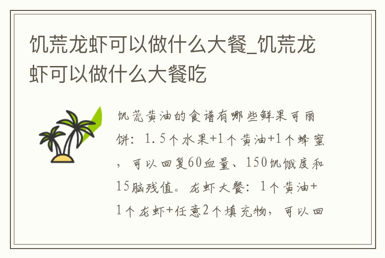 饑荒龍蝦可以做什么大餐_饑荒龍蝦可以做什么大餐吃