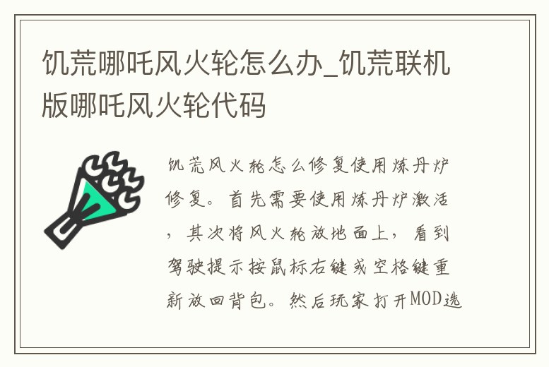 饑荒哪吒風火輪怎么辦_饑荒聯機版哪吒風火輪代碼