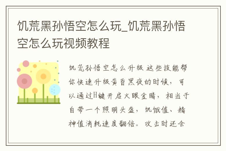 饑荒黑孫悟空怎么玩_饑荒黑孫悟空怎么玩視頻教程