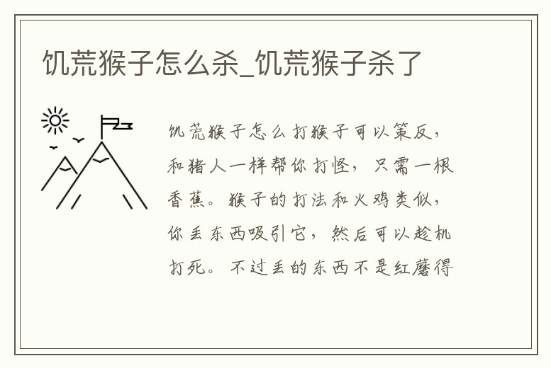 猴子的打法和火雞類似,你丟東西吸引它,然后可以趁機打死。不過丟的東西不是紅蘑菇。得在地上扔大便或者香蕉,等它過來撿,這時候擼死就是(反正會再生)。當然這個方法在對付一群猴子的時候就沒用了,一堆便便直接把。