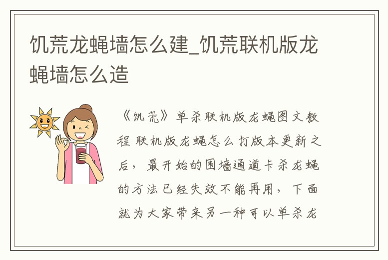 饑荒龍蠅墻怎么建_饑荒聯機版龍蠅墻怎么造