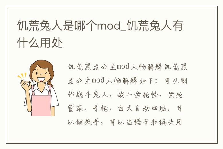 饑荒兔人是哪個mod_饑荒兔人有什么用處