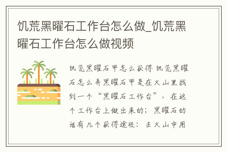 饑荒黑曜石工作臺怎么做_饑荒黑曜石工作臺怎么做視頻