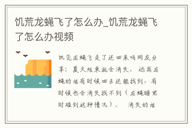 饑荒龍蠅飛了怎么辦_饑荒龍蠅飛了怎么辦視頻