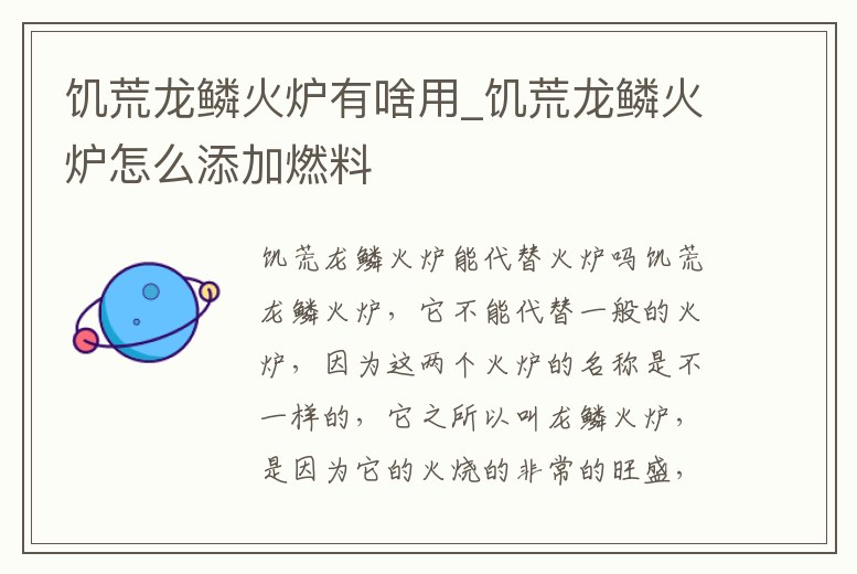饑荒龍鱗火爐,它不能代替一般的火爐,因為這兩個火爐的名稱是不一樣的,它之所以叫龍鱗火爐,是因為它的火燒的非常的旺盛,然后非常的暖和,當我們在寒冬的時候,然后暖和是非常暖的,然后呢,一般的火爐它可能是燒一些炭火。