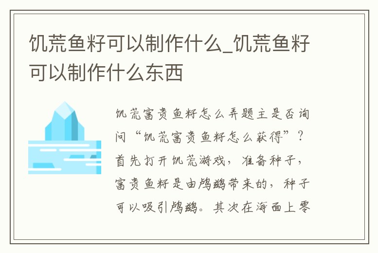 饑荒魚籽可以制作什么_饑荒魚籽可以制作什么東西