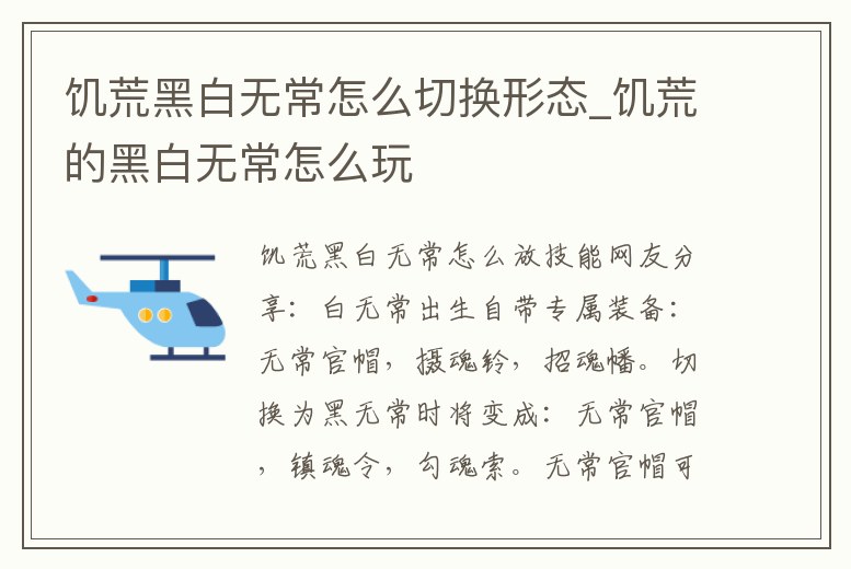 饑荒黑白無常怎么切換形態(tài)_饑荒的黑白無常怎么玩