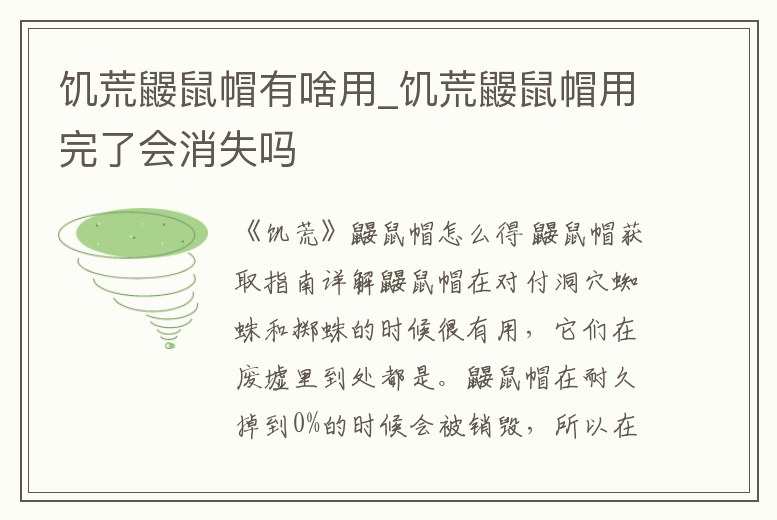 饑荒鼴鼠帽有啥用_饑荒鼴鼠帽用完了會消失嗎