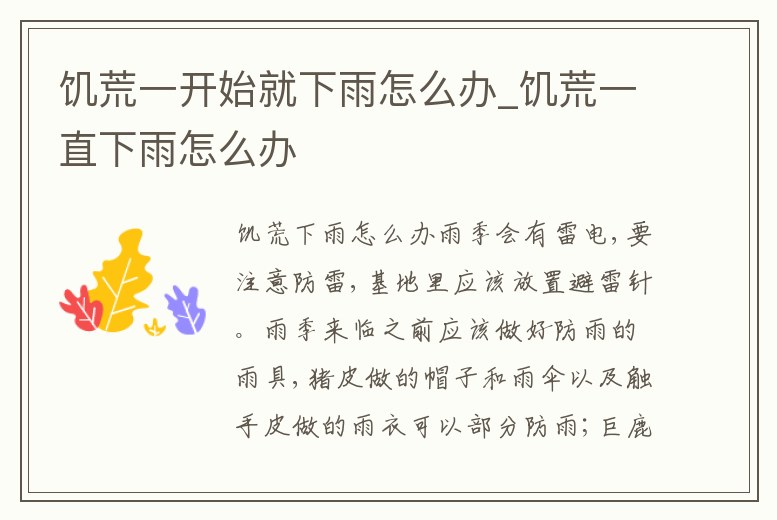 饑荒一開始就下雨怎么辦_饑荒一直下雨怎么辦