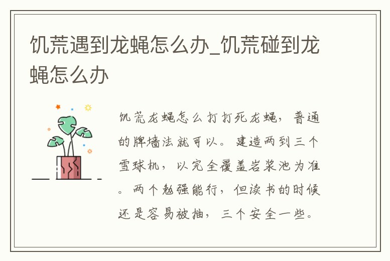 饑荒遇到龍蠅怎么辦_饑荒碰到龍蠅怎么辦