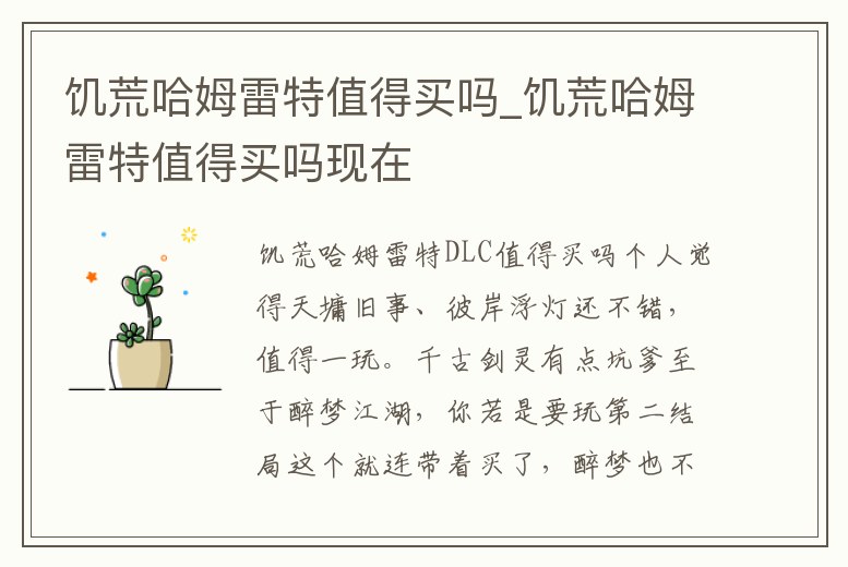 饑荒哈姆雷特值得買嗎_饑荒哈姆雷特值得買嗎現在