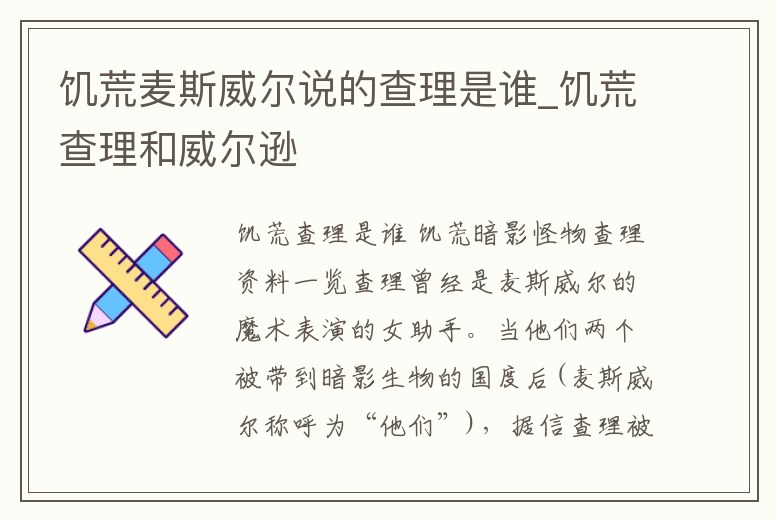 饑荒麥斯威爾說的查理是誰_饑荒查理和威爾遜
