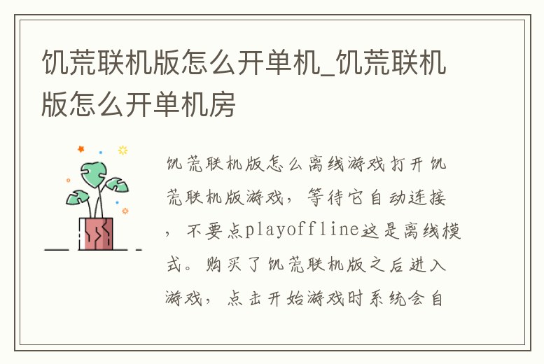 饑荒聯機版怎么開單機_饑荒聯機版怎么開單機房